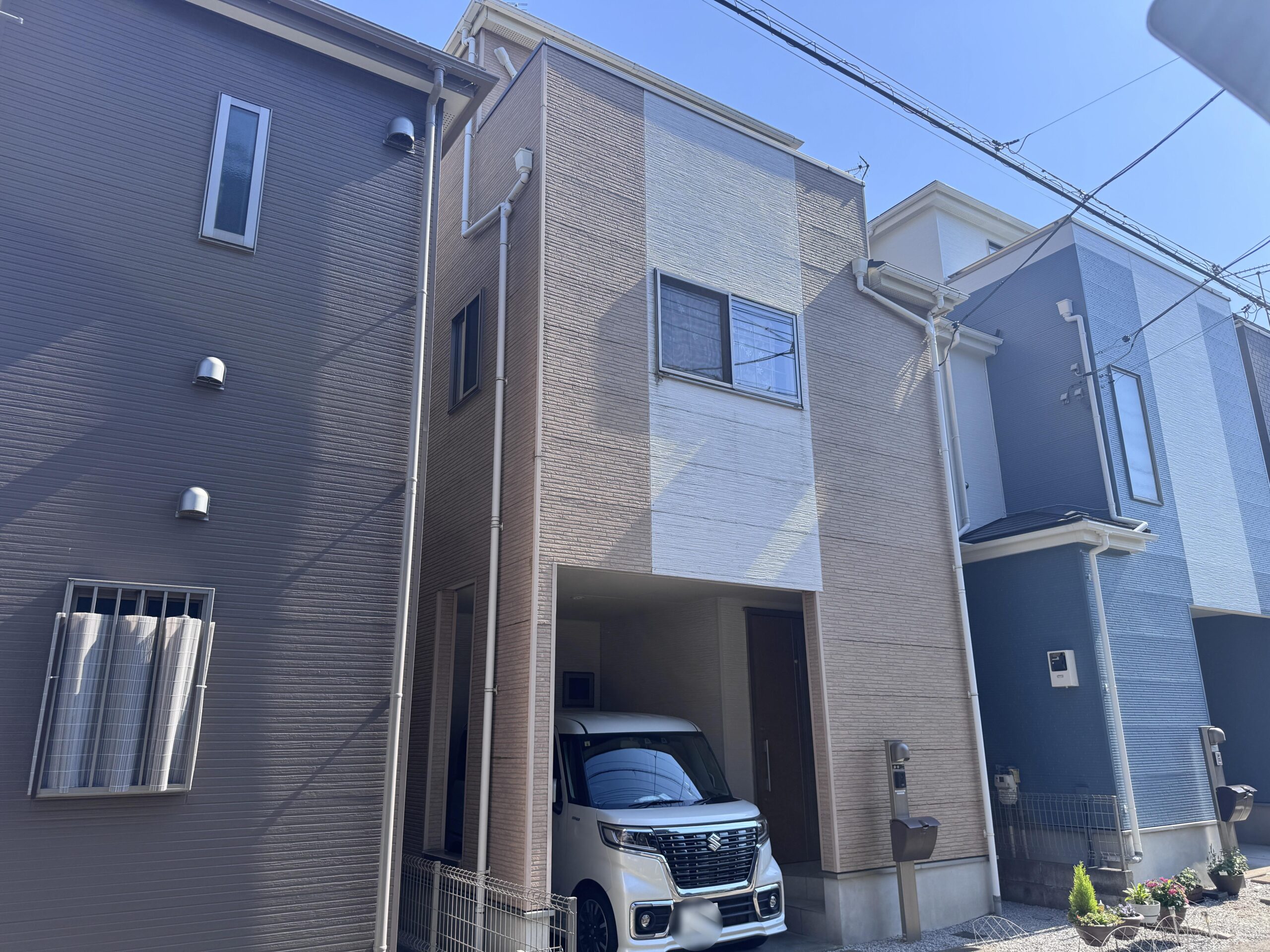 さいたま市大宮区 外壁・屋根塗装 F様邸 2026年3月3日 / サイディング塗装, 外壁塗装, 屋根塗装, 施工事例, 防水工事 BEFORE AFTER 中心の矢印をスライドさせることでBefore After画像をご覧いただけます。 新規のお客様です。数社の見積もりの中当社を選んでくださり、新築時同様、外壁は2色の色分けで施工させていただきました。 外壁塗装前外壁下塗り外壁塗装後 作業施工内容 エリアさいたま市大宮区施工ヶ所外壁・屋根塗装使用材料外壁:日本ペイント・ファインパーフェクトトップSi屋根:日本ペイント・サーモアイSi(遮熱)
